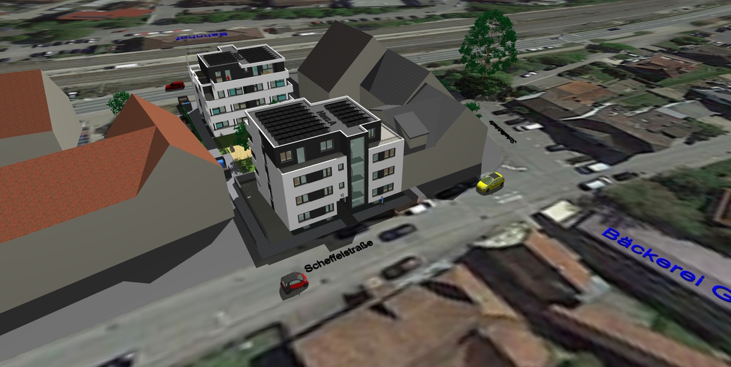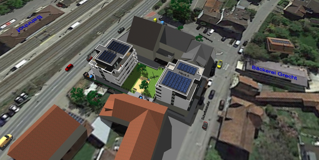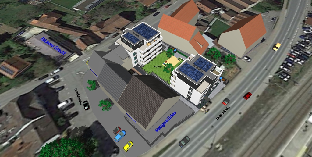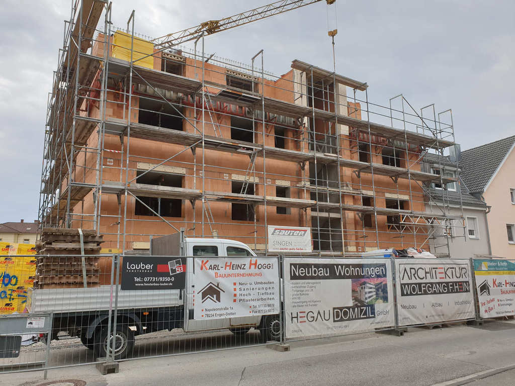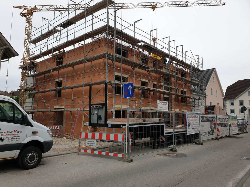 Wir erstellen für Sie in bester Lage im Ortskern von Engen zwei Mehrfamilienhäuser mit jeweils 7 Wohneinheiten und einer Tiefgarage mit 15 Stellplätzen. Sie erreichen innerhalb von 2 Gehminuten sowohl Metzger, Bäcker, Lidl, Sparkasse, Apotheke, Bahnhof wie auch die Engener Altstadt. Durch die kurze Distanz zum Bahnhof eignet sich dieser Standort auch besonders gut für Pendler in Richtung Singen, Radolfzell und Konstanz. Alle Wohnungen sind barrierefrei erreichbar. Alle Wohnungen sind hell und geräumig und verfügen über ein Bad mit Fenster, sowie einen grossen überdachten Balkon. Zu jeder Wohnung gibt es einen Kellerraum, einen PKW-Stellplatz in der Tiefgarage, sowie 2 Fahrrad-Abstellplätze. Durch den Bau als KfW-55 Effizienzhaus erhalten Sie bis zu 100.000,- €/ WE einen Zinsatz von derzeit 0,8 %, sowie einen tilgungsfreien Zuschuss in Höhe von 5.000,- €/ WE.